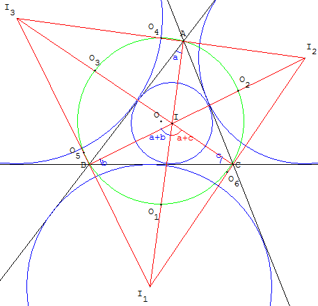 Leurs points d'intersection sont les centres I, I1, I2, I3 des cercles inscrit
